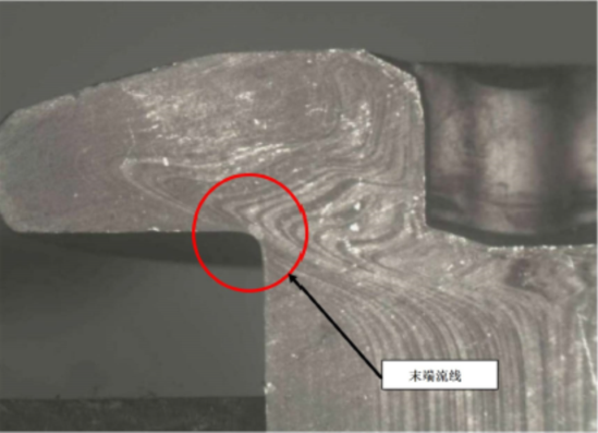 圖8-不可接受的沉窩驅(qū)動零件的金屬流線