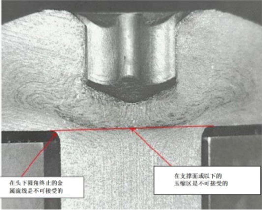 2.1 熱處理后,確定金屬流線的可接受性是非常主觀的,因此,金屬流線檢測應(yīng)在剛冷鐓后、熱處理前以及零件的后續(xù)加工后進行,并應(yīng)作為主要制造檢驗方法。